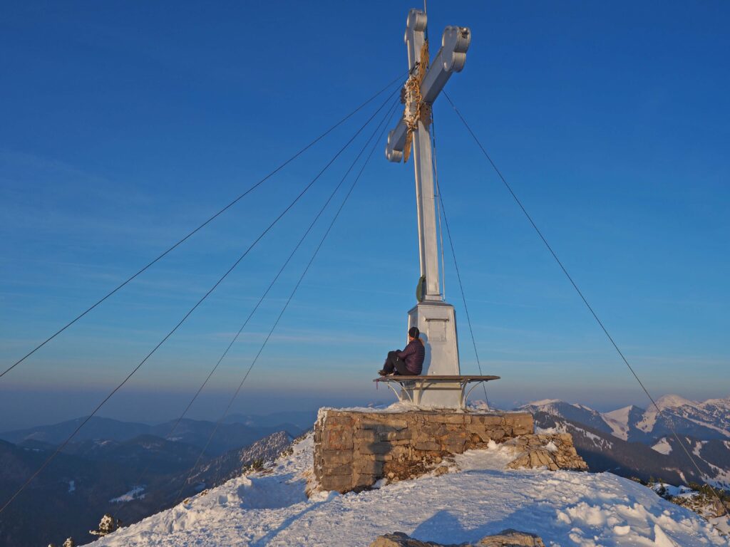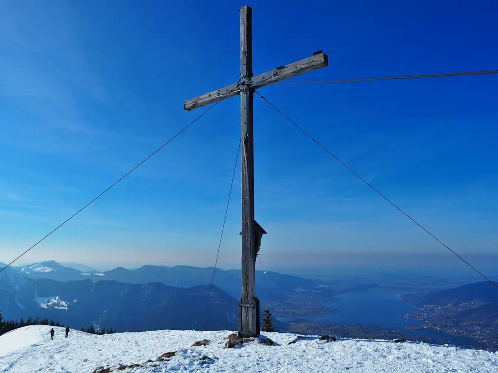 Vom Wallberghaus sind es nur noch etwa 200 Höhenmeter bis zum Gipfel. Der Weg ist technisch einfach, aber im Winter oft vereist, besonders im Gipfelbereich. Spikes können hier entscheidend sein. Bei guten Bedingungen ist dieser Abschnitt ein reines Genussstück – großartige Ausblicke inklusive.