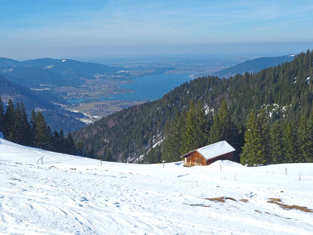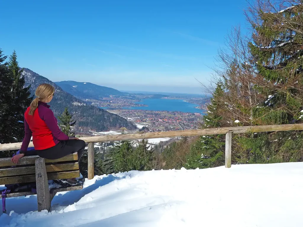 Der Tegernsee mit seinen Gipfeln Wallberg und Setzberg gehört zu den beliebtesten Winterwandergebieten Bayerns. Der Wallberg (1.722 m) und der Setzberg (1.706 m) sind zwei wunderschöne Aussichtsberge, die ein eindrucksvolles Panorama über den Tegernsee, das Voralpenland und bis weit in die Zentralalpen bieten. Im Winter verwandelt sich die Region in eine funkelnde Schneelandschaft, die perfekte Bedingungen für ruhige, aussichtsreiche Wintertouren bietet.